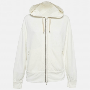 Brunello Cucinelli Beige Embellished Cotton Blend Zip-Up Hoodie M