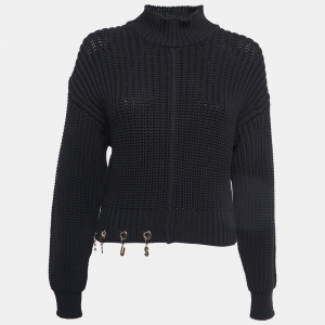 Versus Versace Black Rib Knit Logo Charm Detail Sweater S