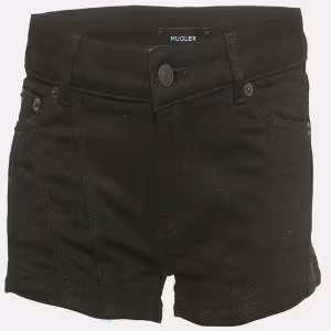 MUGLER Black Denim Low Waist Shorts S/Waist 29"
