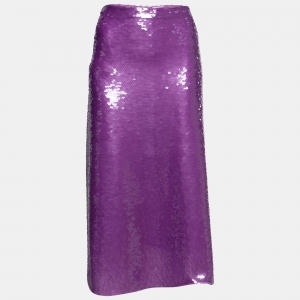 Victoria Beckham Purple Sequin Midi Skirt M