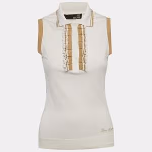 Love Moschino Cream Silk Ruffled Neck Sleeveless Top S