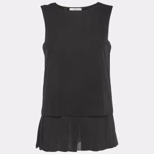 Max Mara Black Stretch Crepe and Pleated Chiffon Top S