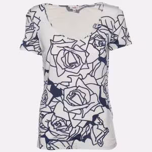 Versace Jeans Couture White/Blue Printed Jersey Round Neck Top M