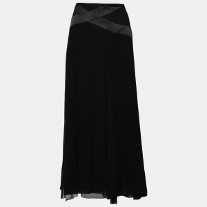 Armani Collezioni Black Silk Paneled Midi Skirt S