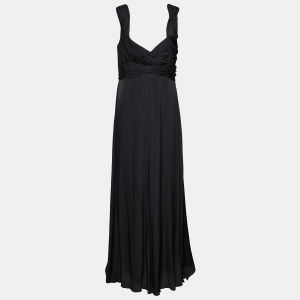 Armani Collezioni Black Crepe V-Neck Sleeveless Maxi Dress S
