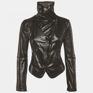 Armani Collezioni Black Zig Zag pattern Zip Front Jacket L