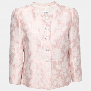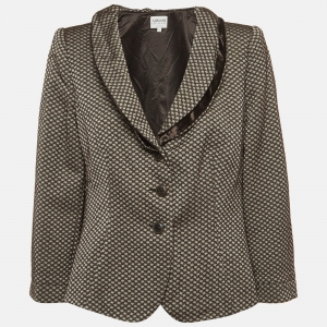 Armani Collezioni Grey Italian Rose Jacquard Knit Button Front Blazer XL