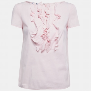Prada Pink Cotton Jersey Bow Detail A-Line Mini Dress XS