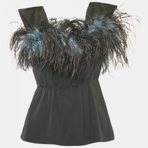 Prada Black Knit Triangle Enamel Logo Sleeveless Crop Top S