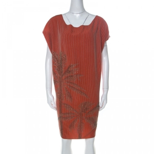 Roberto Cavalli Off White Floral Shimmer Print Silk Slit Detail Kaftan L