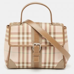 Burberry Beige/Dark Brown Haymarket Check PVC and Leather Minford Satchel