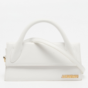Jacquemus White Leather Long Le Chiquito Top Handle Bag