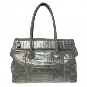Nancy Gonzalez Grey/Holographic Effect Crocodile Satchel