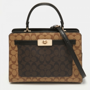 Coach Brown/Black Signature Canvas and Leather Tilly Top Handle Bag