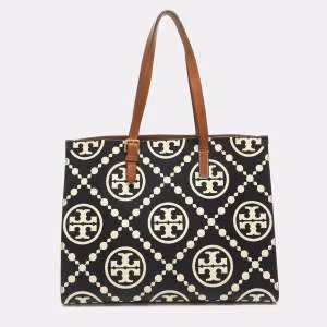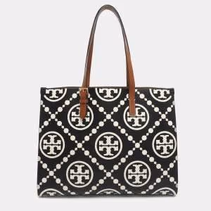 Tory Burch Block-T Black Leather Shopper Tote