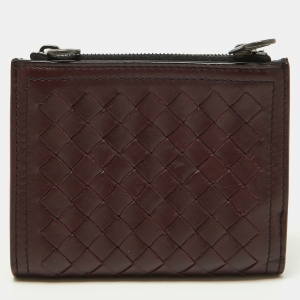 Bottega Veneta Burgundy Intrecciato Leather Bifold Wallet