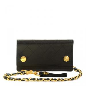 Chnael Black Aged Quilted Leather Lucky Charms 2.55 Reissue Wallet on Chain