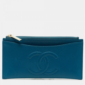 Chanel Blue Quilted Leather Trifold Wallet