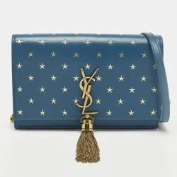 Saint Laurent Kate Tassel Blue/Gold Star Print Leather Wallet On Chain