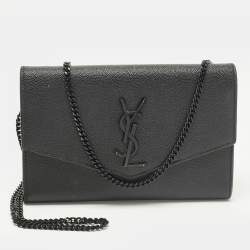 Saint Laurent Uptown Black Leather Wallet On Chain