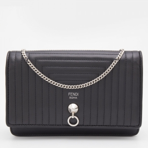 Fendi Black Embossed Leather Wallet On Chain