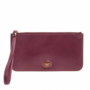 Emporio Armani Burgundy Patent Leather Wristlet Clutch