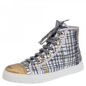Chanel Multicolor Tweed and Metallic Leather Lace Up Sneakers Size 39.5
