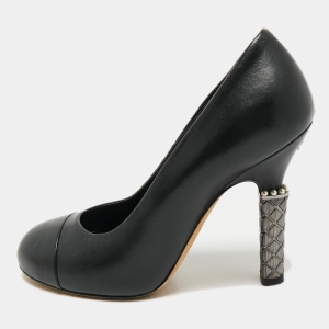 Chanel Black Leather Cap Toe D'orsay Pumps Size 40