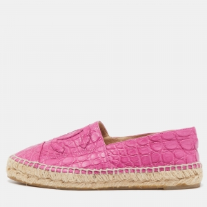 Chanel Pink Crocodile Leather CC Espadrille Flats Size 38