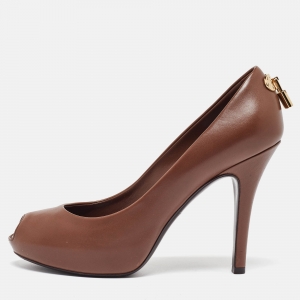 Louis Vuitton Brown Patent Leather Oh Really! Peep Toe Pumps Size 36
