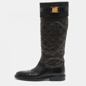 Louis Vuitton Black/Brown Leather and Monogram Canvas Star Trail Ankle Boots Size 40