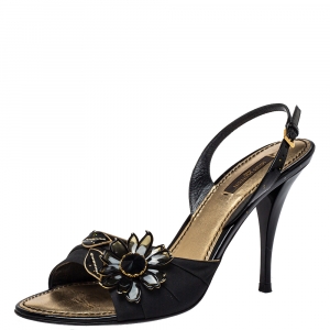 Louis Vuitton Black/Multicolor Patent Leather And Monogram Canvas Studded Cap Toe Slingback Sandals Size 39