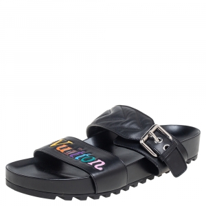 Louis Vuitton Black Multicolor Monogram Canvas And Leather Trim Slide Mule Sandals Size 37.5