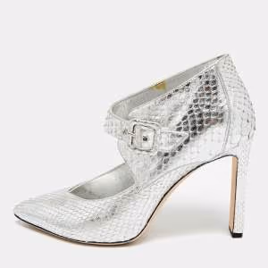 Jimmy Choo Letty 100 Size 38.5 Silver Python Leather Ankle Length Boots