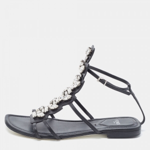 Fendi Black Satin Crystal Embellished Slingback Platform Sandals Size 39