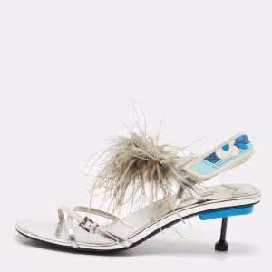 Prada White/Silver Leather Flat Ankle Strap Sandals Size 37