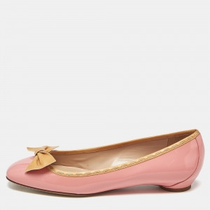 حذاء كعب عالي فالنتينو جلد بيج لامع بفيونكة ومقدمة مفتوحة ونعل سميك مقاس 39