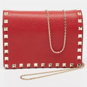 محفظة فالنتينو جلد أحمر بالشعار وسلسلة