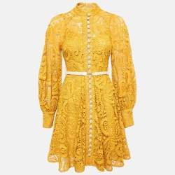 فستان ميني زيمرمان بطبعة وردية/صفراء كتان مزخرف بقصة مكشوفة مقاس متوسط (ميديوم)