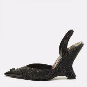 حذاء كعب عالي لوريبلو جلد وردي مزخرف كريستال مع منصة مقاس 37
