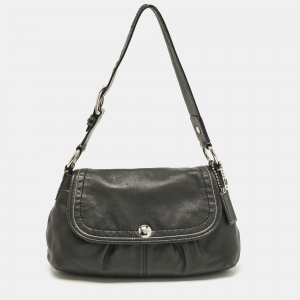 حقيبة كتف كوتش جلد سوداء بقفل علوي