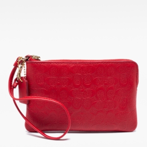 حقيبة كلتش بحمالة معصم كوتش جلد أحمر نقشة شعار ماركة