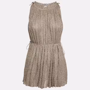 فستان لوف موسكينو بقماش قطن وحرير مطبوع بنقشة الفهد البنية مقاس متوسط (ميديم)