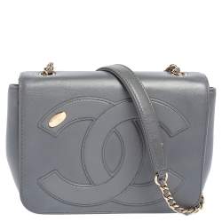 حقيبة شانيل CC مانيا بقلاب جلد رصاصي صغيرة بقلاب