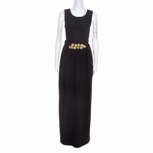 فستان سهرة توري برش كريب أسود مزخرف ظهر متعاكس بلا أكمام S