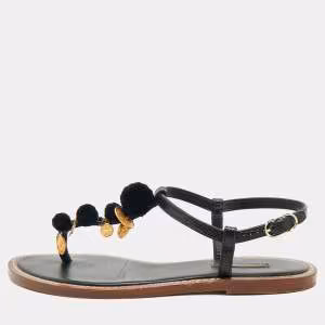 حذاء كعب عالي توري برش جلد أسود شعار مفتوح من الأمام كعب روكي مقاس 38