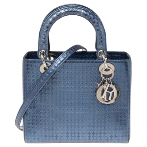 Pre Owned حقيبة يد توتس ديور ليدي ديور جلد ميكرو كاناج أزرق ميتاليك متوسطة
