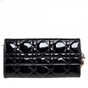 Pre Owned حقيبة كلتش ديور ليدي ديور جلد كاناج أسود مبطن لامع بسلسلة