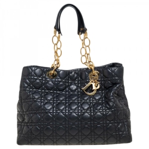 حقيبة يد توتس ديور ليدي ديورجلد كاناج أسود لامع كبيرة