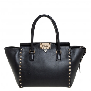 حقيبة يد توتس فالنتينو ترابيز روكستد جلد أسود منقوش